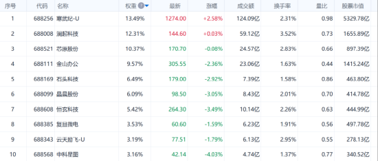科创人工智能ETF(589520)前十大权重