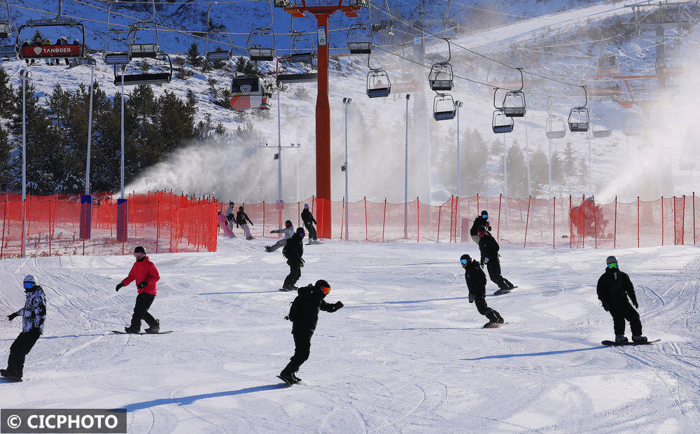↑2025年11月23日,滑雪爱好者在内蒙古乌兰察布市大河湾滑雪场滑雪。CICPHOTO/吕昊俊 摄
