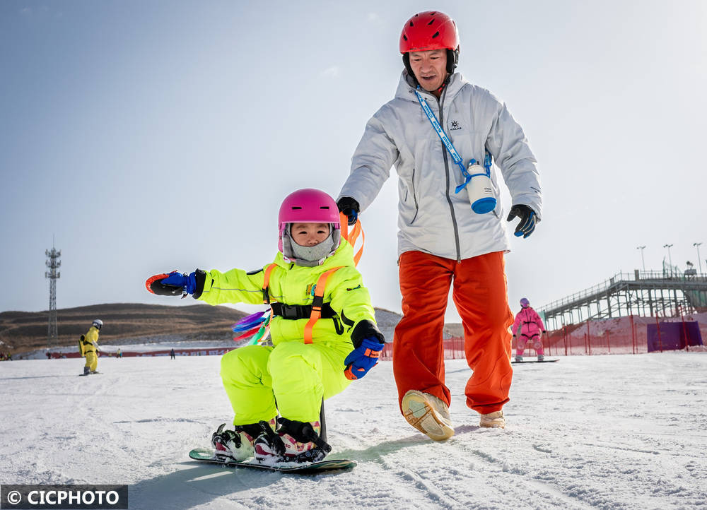 ↑2025年11月23日,在内蒙古呼和浩特市马鬃山滑雪场,一名小朋友在家长看护下练习滑雪。CICPHOTO/丁根厚 摄